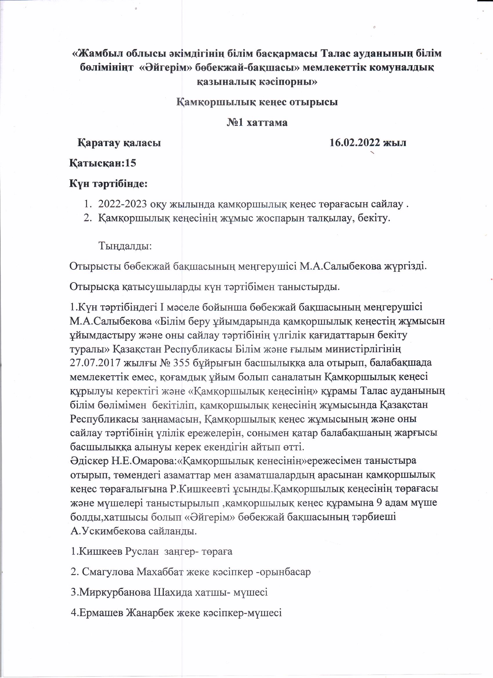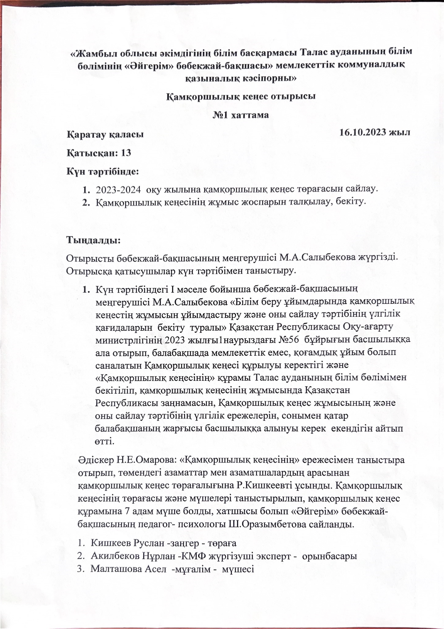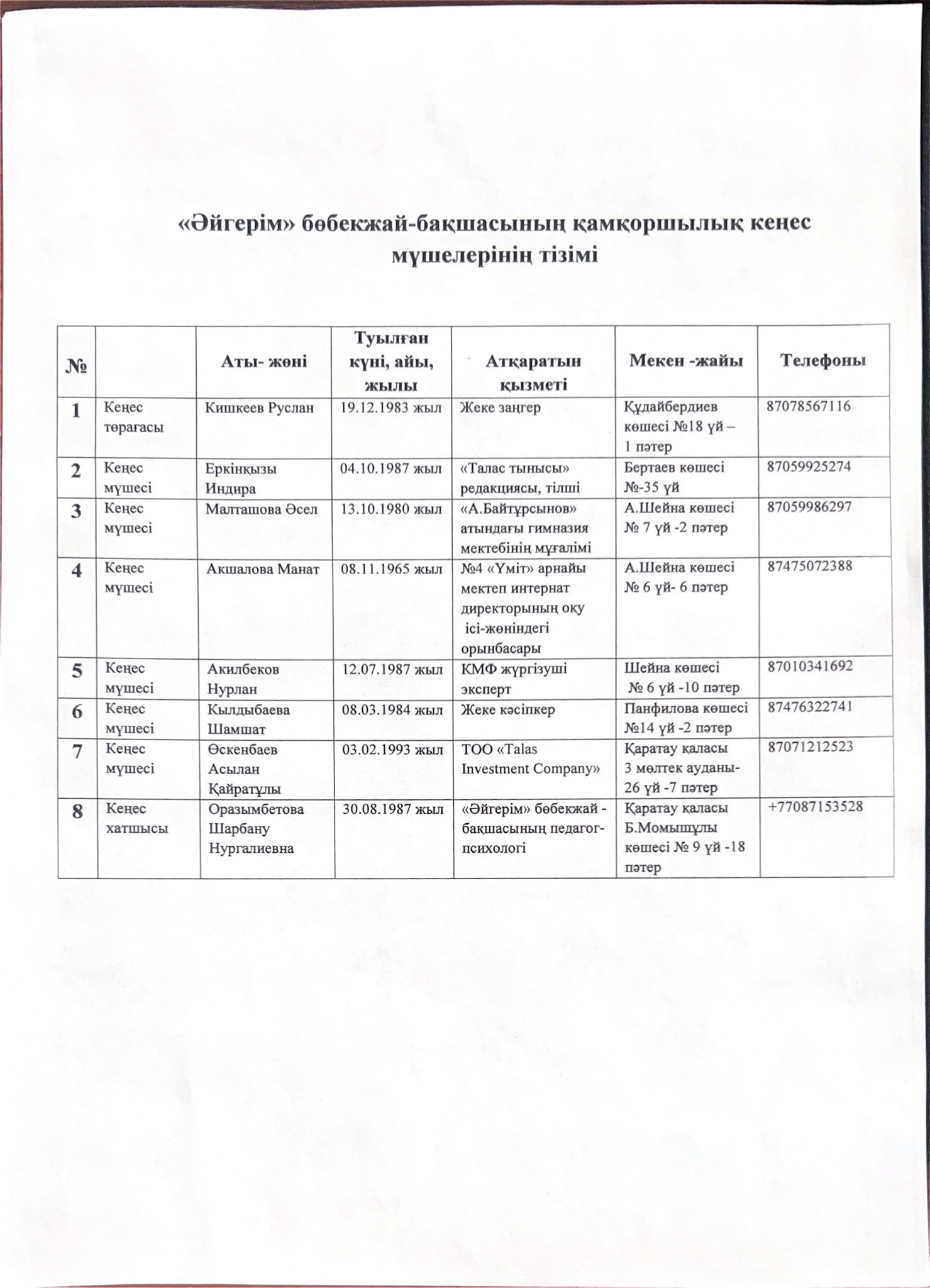 Қамқоршылық кеңес төрайымы: Қалдыбаева Шамшат – жеке кәсіпкер